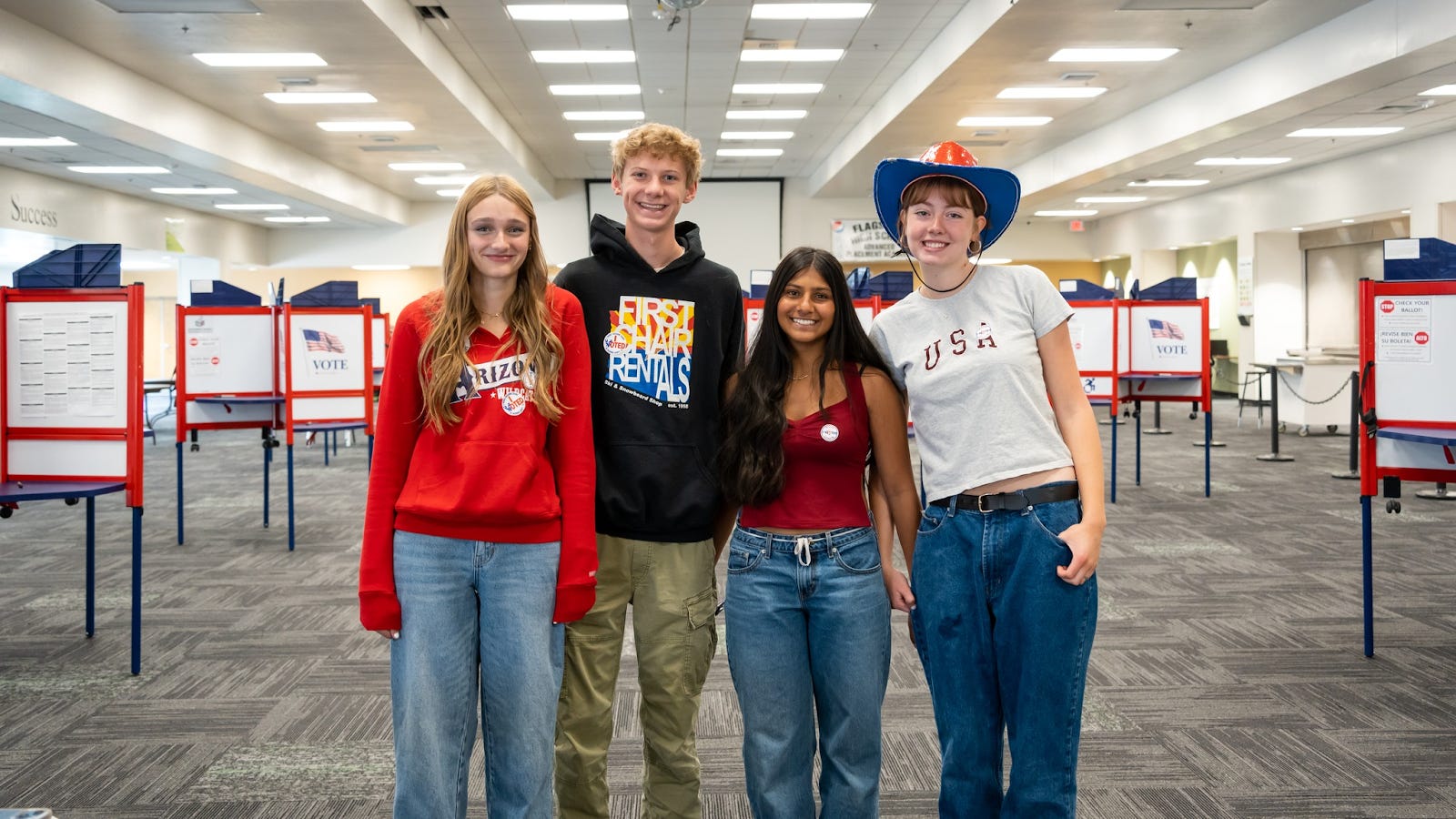 🗳️☑️ Thanks to a partnership with the Coconino County Elections Department, Rural Arizona Engagement, the Center for the Future of Arizona, and our friends at the Arizona Students’ Association, Flagstaff High School hosted an incredible Vote Day! Students were given the option to vote on four school improvement proposals sourced directly from students. Students were able to vote using real voting stalls and accessible voting machines, and students above the age of 18 were given the opportunity to register to vote.