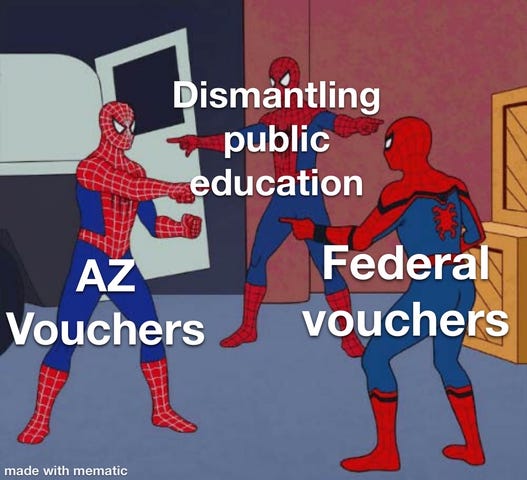 ✉️ Letter to the Editor Warns Vouchers Will Bankrupt AZ Schools: As public schools continue to close, this letter to the editor featured in the Arizona Republic from Alexis Reed in Anthem sums up the disconnect between the billion dollars spent on vouchers for the wealthy while public schools remain underfunded: