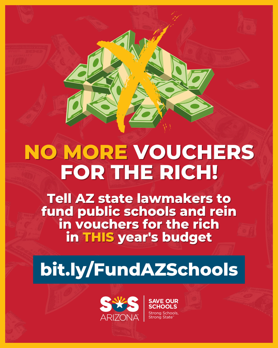 Tell your lawmakers and Gov. Hobbs that unaccountable vouchers for the rich must be reined in in this year’s budget! Our students deserve quality resources, safe buildings, and rich academic experiences that will prepare them for a strong future. Our educators deserve pay raises and quality working conditions that benefit all teachers, staff and students.