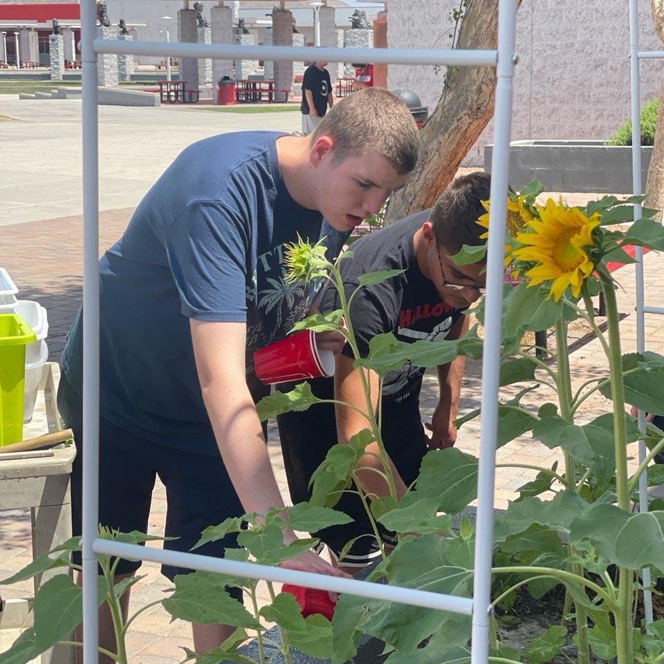 At Liberty High School in Peoria, students in Ms. QP’s Life Skills class have a yearly spring tradition of planting sunflowers in the school garden! Last week, Ms. QP’s class got a helping hand from the Unified Music Class! 🌻🌻🌻