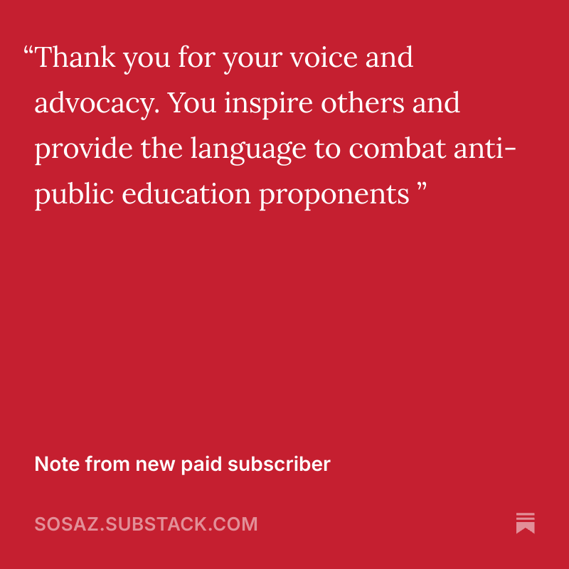 Our newsletters don’t write themselves! Support our work by becoming a paid subscriber to Save Our Schools Arizona’s Substack. A monthly or annual donation of any amount helps to keep the lights on at the Weekly Education Report so we can provide you with the latest news in education week after week.